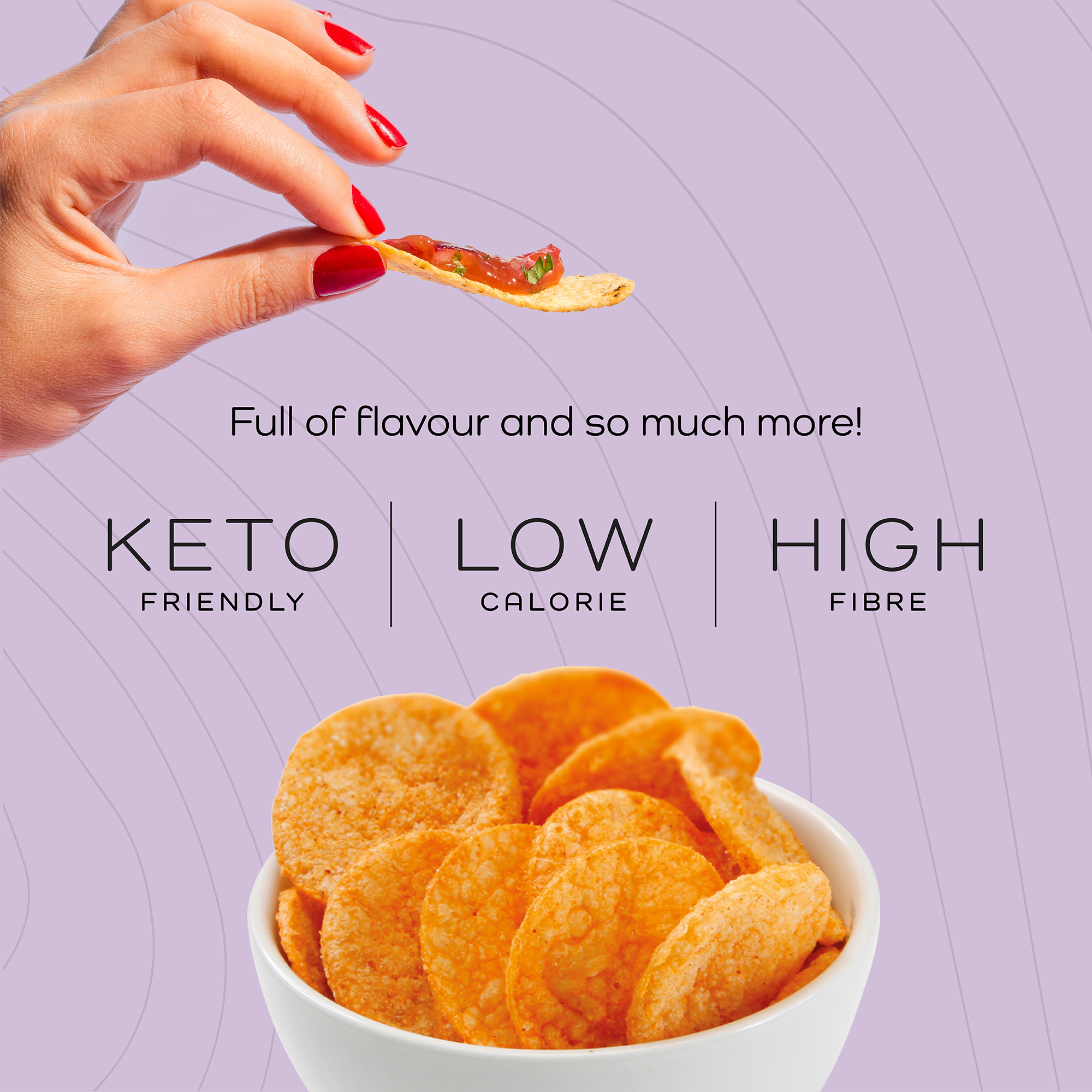 - + Only 3.3g Fat — much less than standard crisps